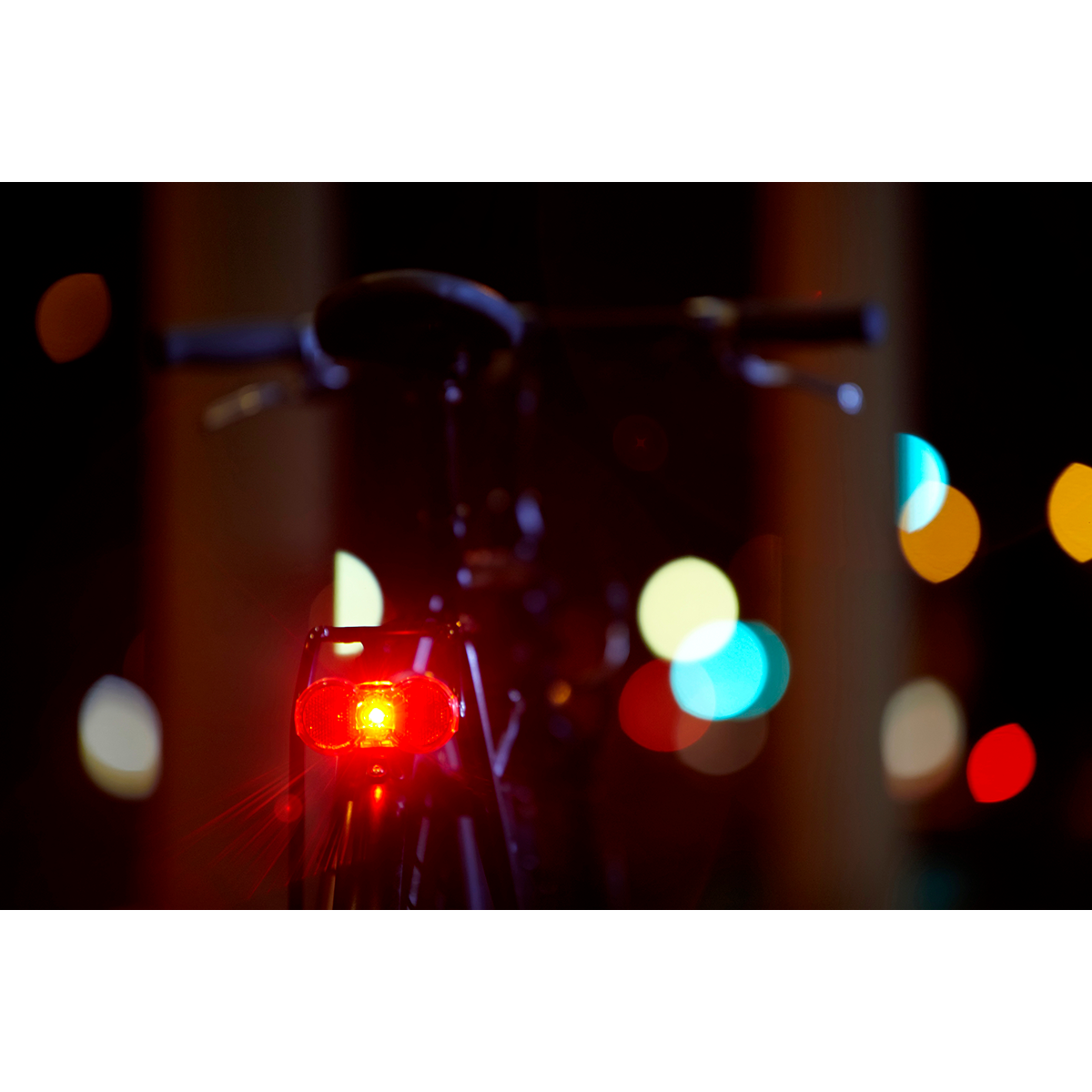 Dynamo-powered diode light for rear racks, with innovative light technology.