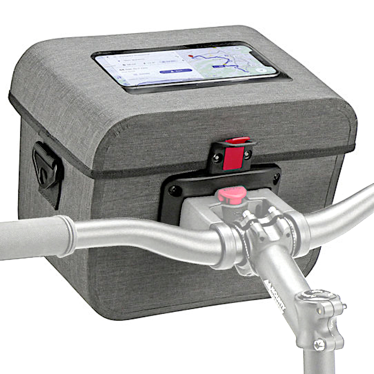 • Integrated adapter plate to click onto the back of the bag (handlebar mount NOT included)