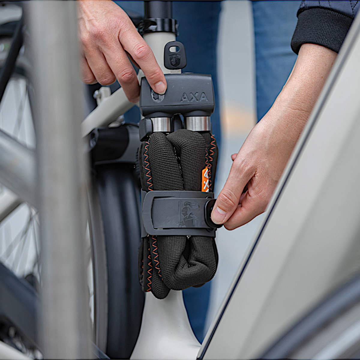 The Foldable 800 by AXA is equipped with 8mm wide movable links made of hardened steel. This means the lock is very flexible and can be attached almost anywhere.
