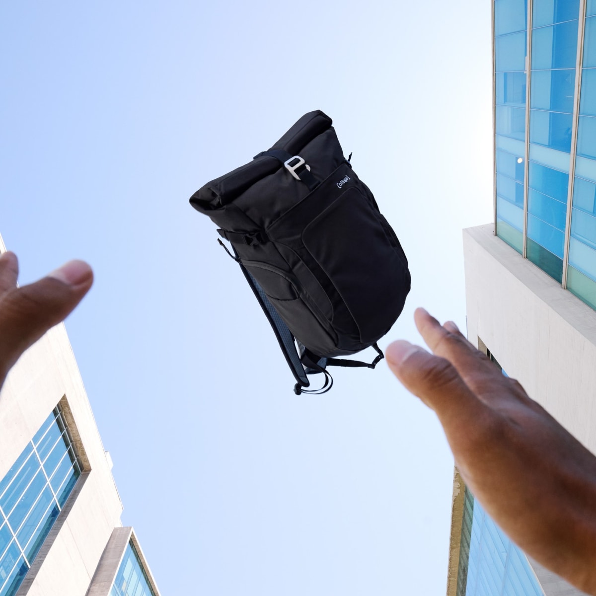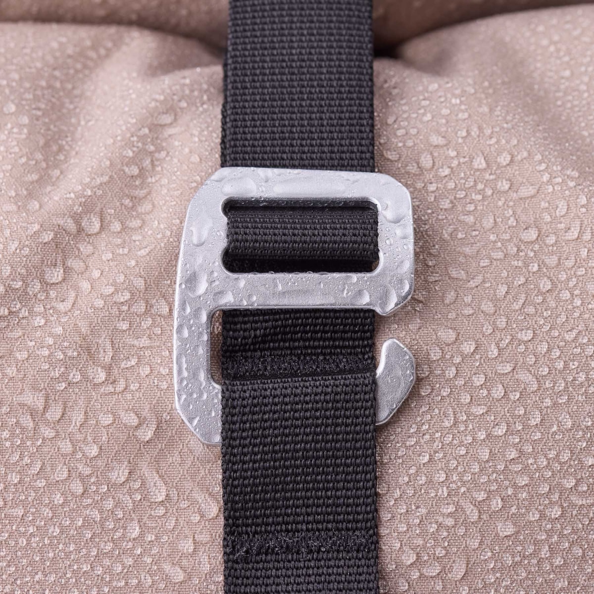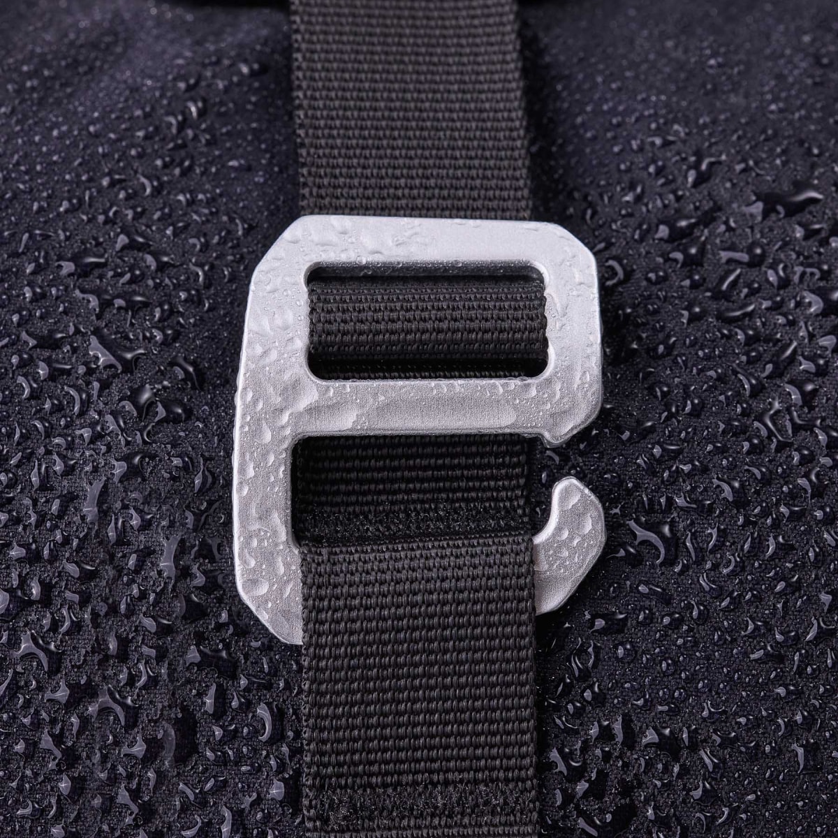 • Roll-top closure is simply fixed to the front of the backpack via a hook