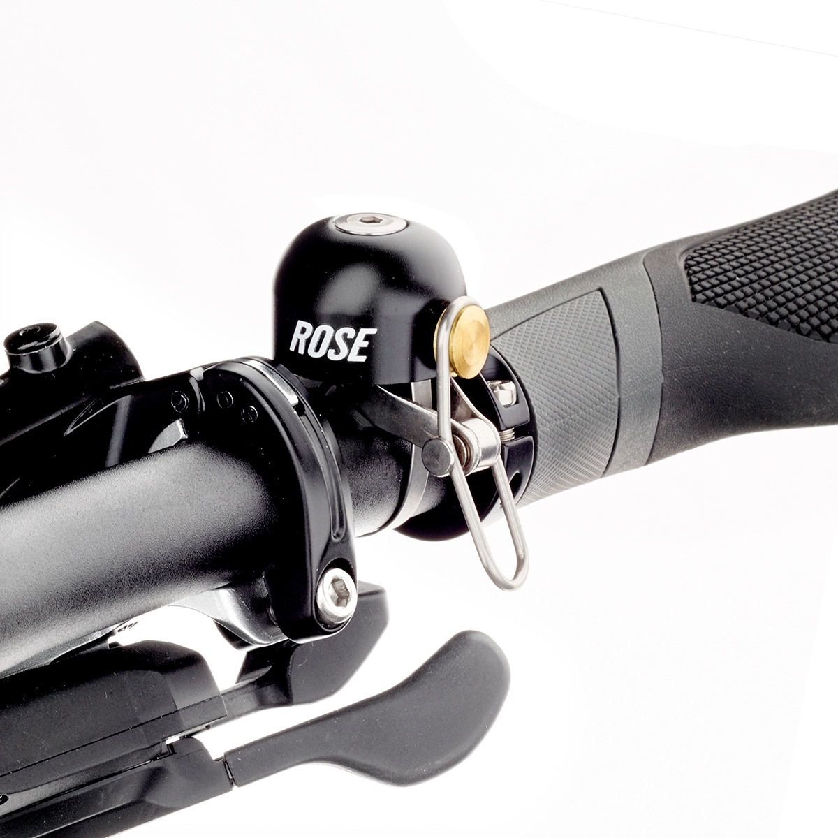 You can mount the bell with classic metal straps, which are hooked in underneath the bell cover and get tensioned with a hex screw on top. The ROSE Free Tony Pro fits handlebar Ø 22.2 mm, Ø 25.4 mm and Ø 31.8 mm.