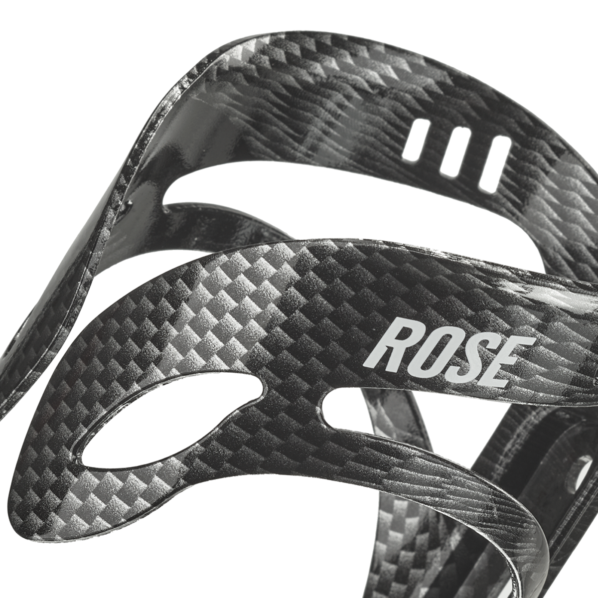 The ROSE Pro AL3CA bottle cage combines functionality with a cool carbon look. Two arms tightly hold the bottle. Besides, the aluminium holder is slightly chamfered for easy insertion of the bottle.