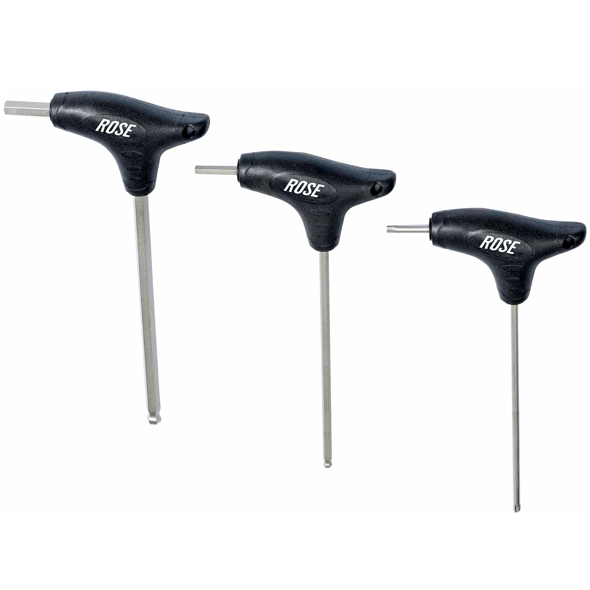 This ROSE set offers all the keys you need. The plastic coated T handle lies comfortably in your hand and a ball end makes sure you will even reach areas that are fiddly to access. The metal stand provides a clean workbench. It stands on its own and attaches to your workbench or workshop wall with the supplied mounting kit.